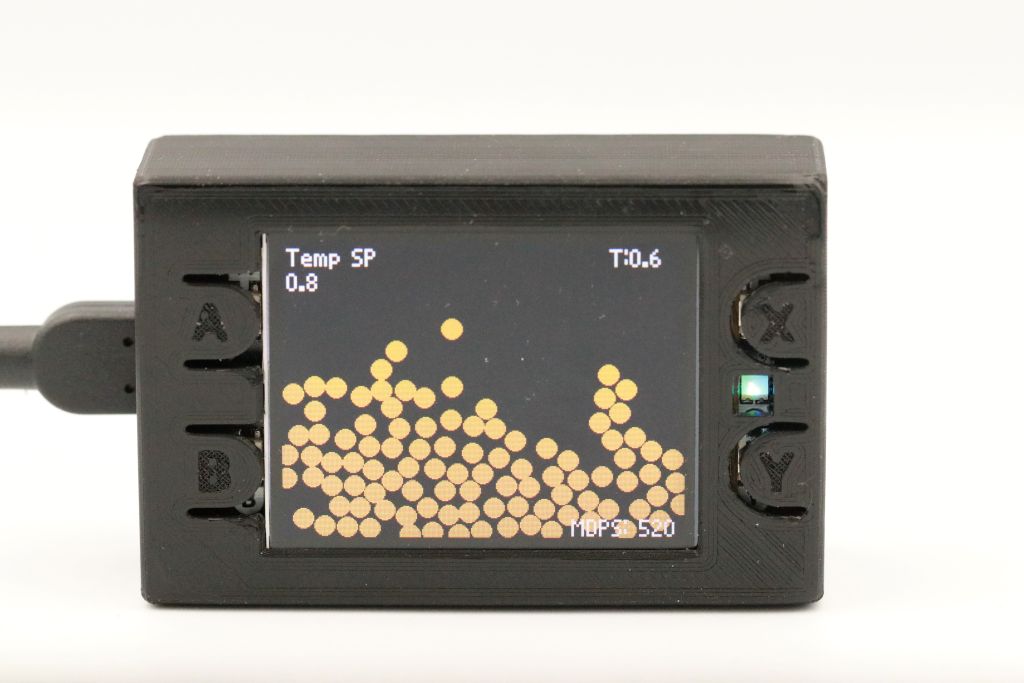 In the full demo (display + accelerometer + 100 atoms): ~500 MD steps/second.